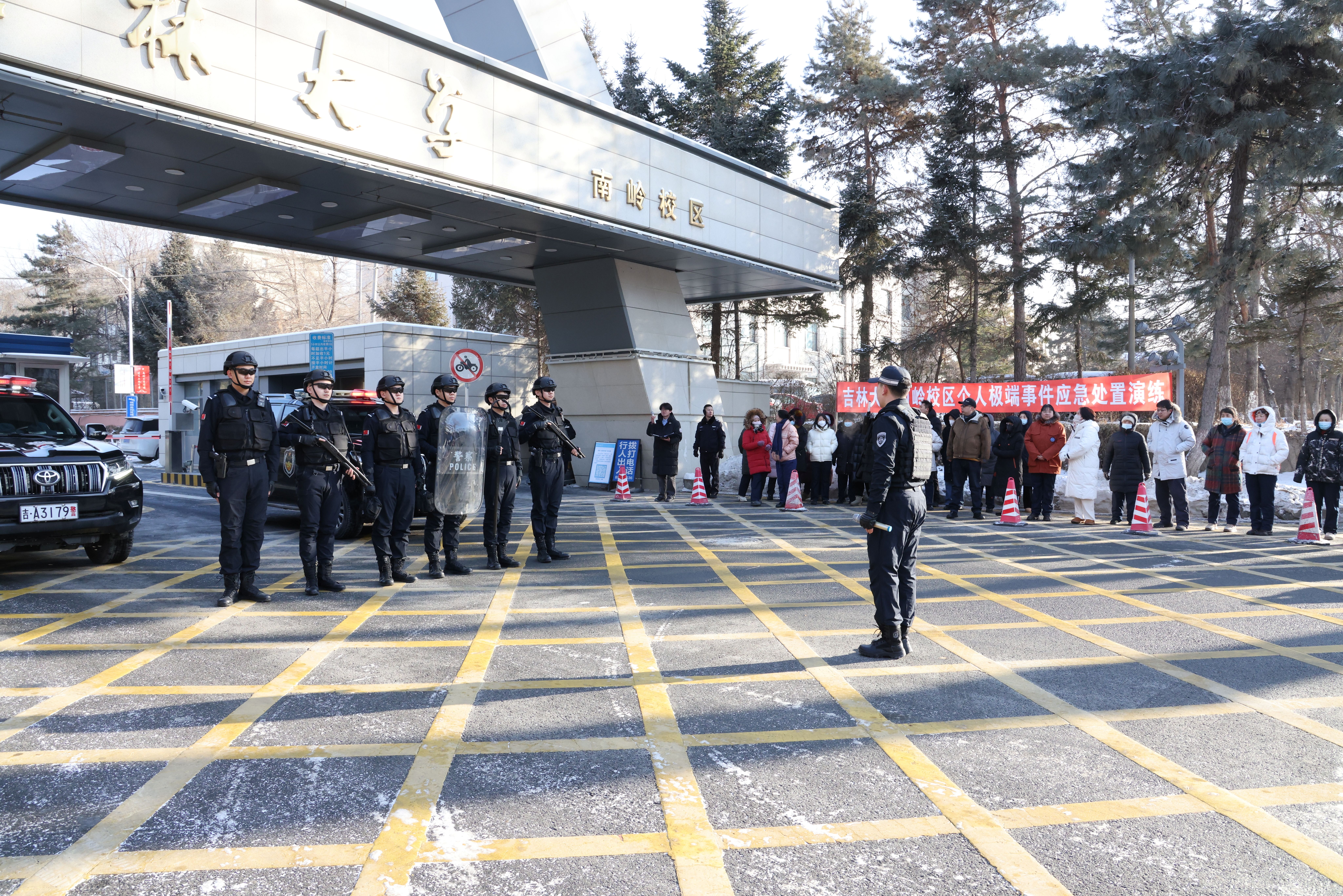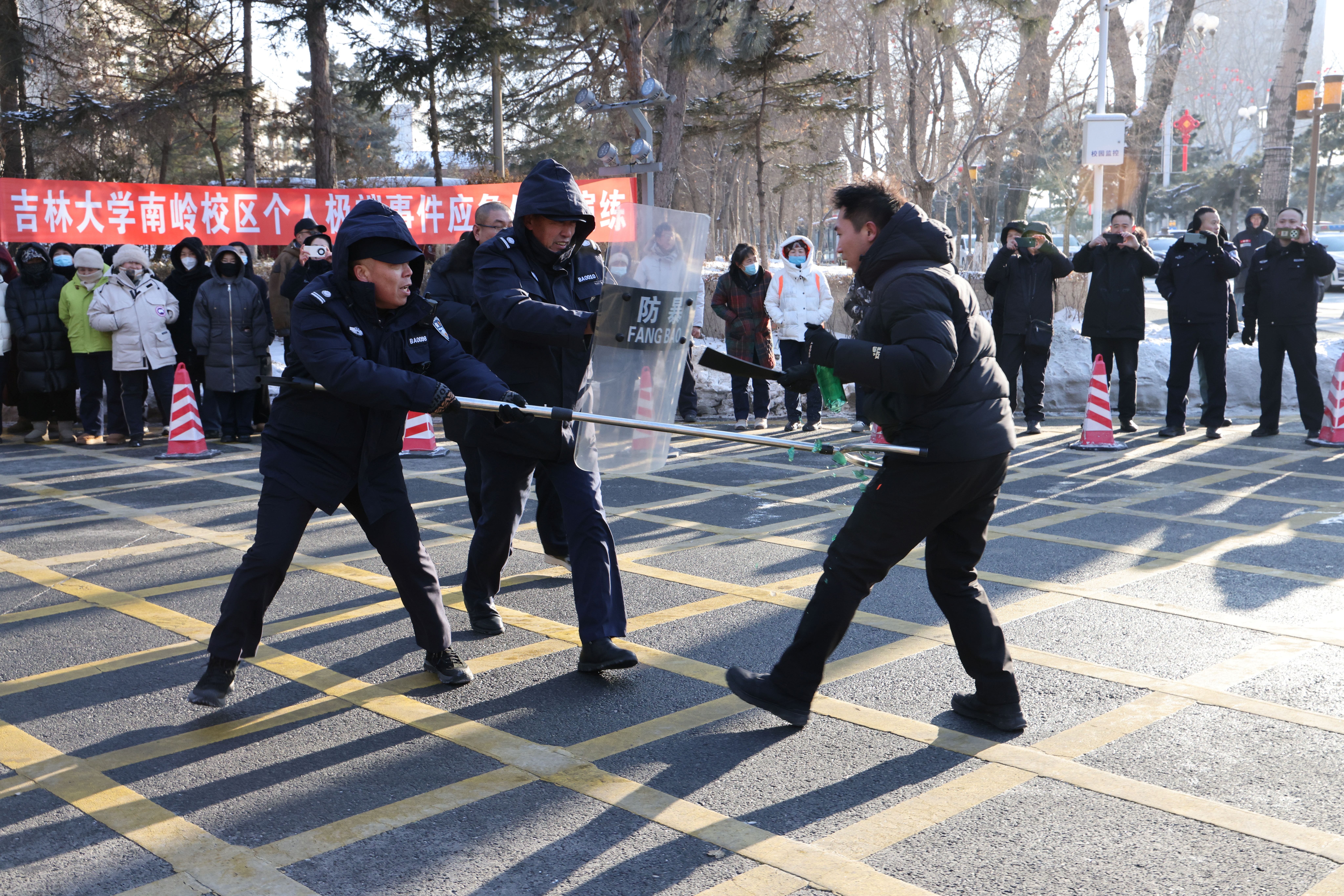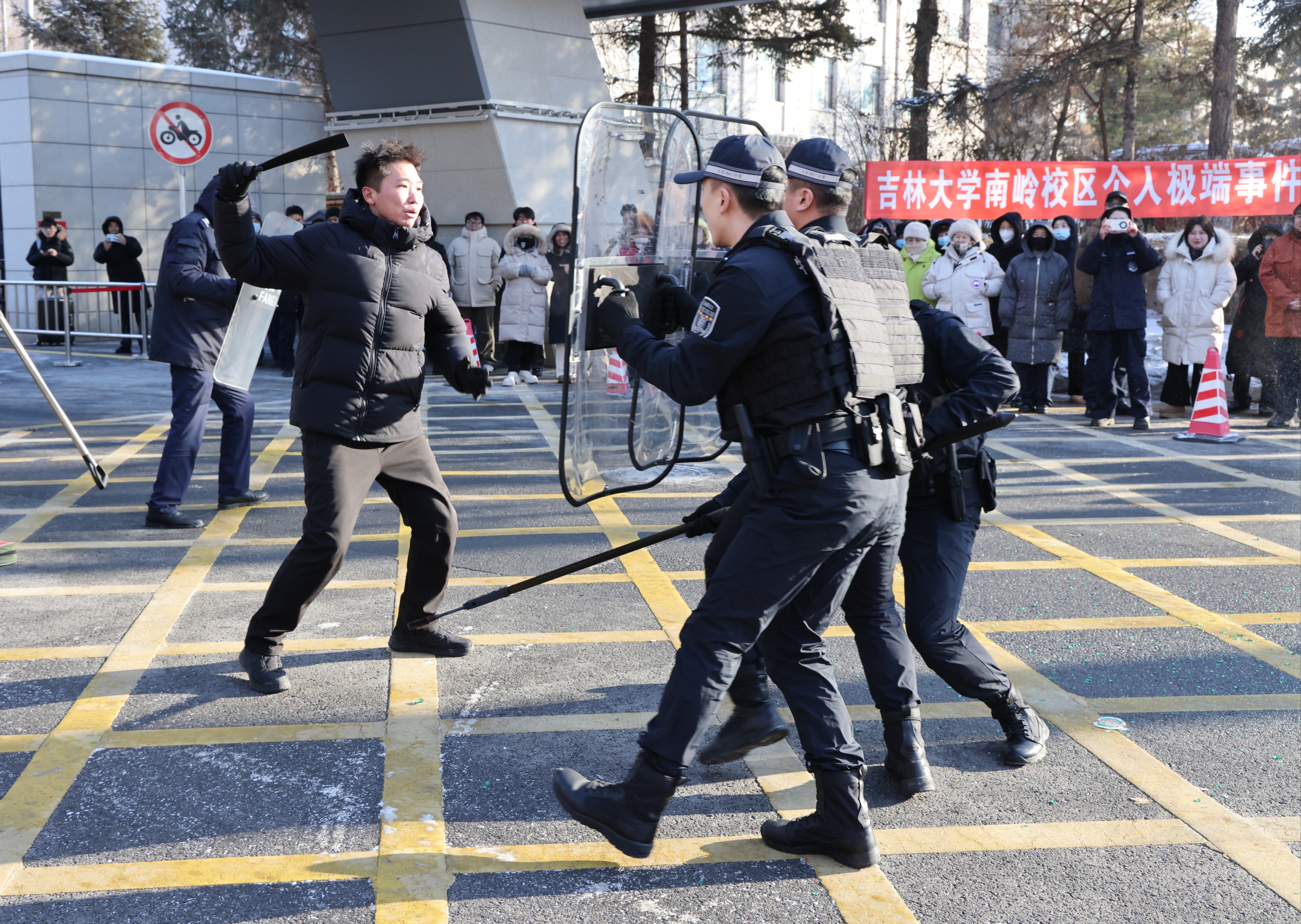 2026年1月16日下午,“警校联动护平安,精准处置筑防线”个人极端事件应急处置演练在吉林大学南岭校区西门举办。长春市公安局特警支队机动大队政委曹建坤,吉林大学保卫处处长刘雪峰、东区事务办公室主任张长亮等出席活动。特警支队相关负责人、民警,学校相关部门负责人及师生代表参加演练。