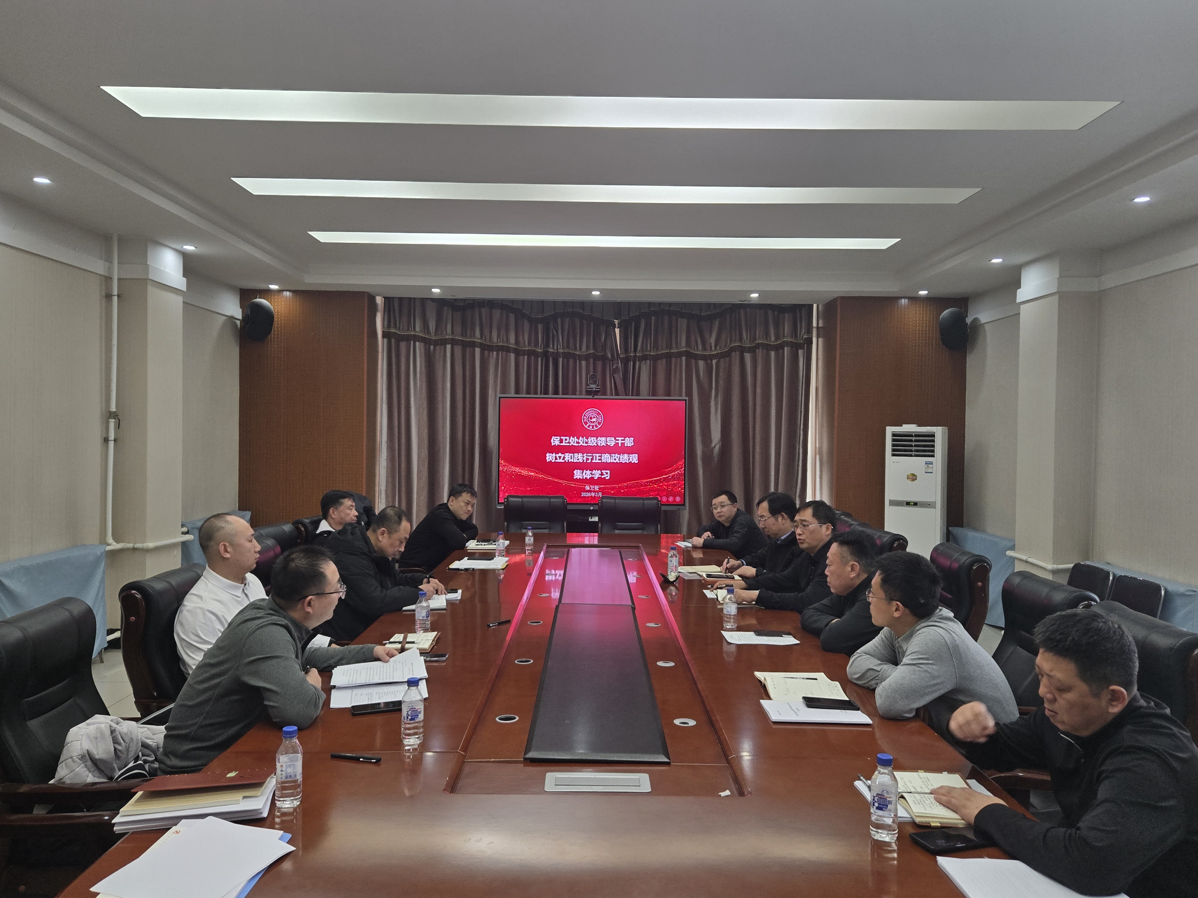 3月19日,保卫处在商贸楼226会议室举办树立和践行正确政绩观学习教育读书班开班仪式暨第二次集体学习。保卫处领导班子全体成员参会。会议由党总支书记刘雪峰主持。